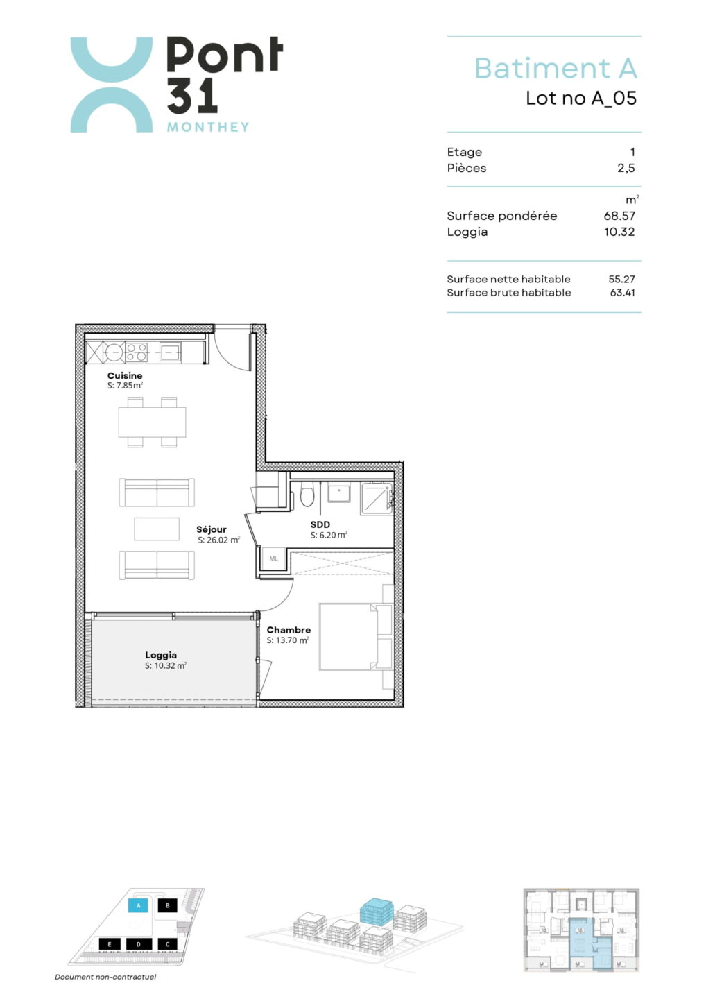 | A05 | 1er | 2.5 | 69 m2 | réservé | ||||||