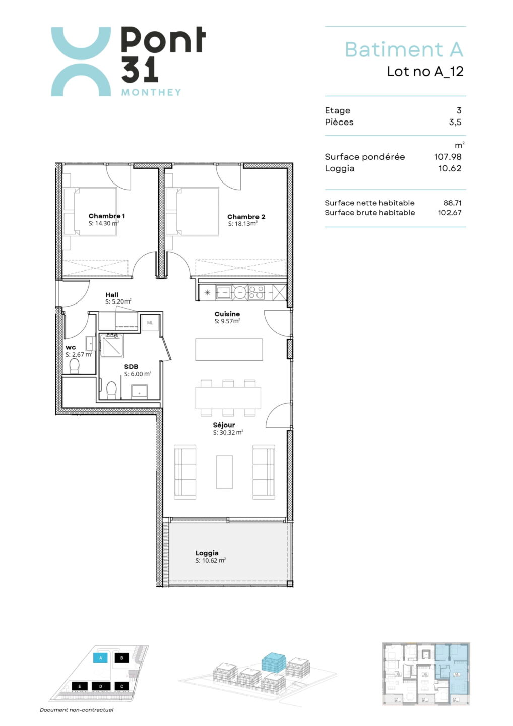 | A12 | 3ème | 3.5 | 108 m2 | CHF 605'000 | pré-réservé | |||||