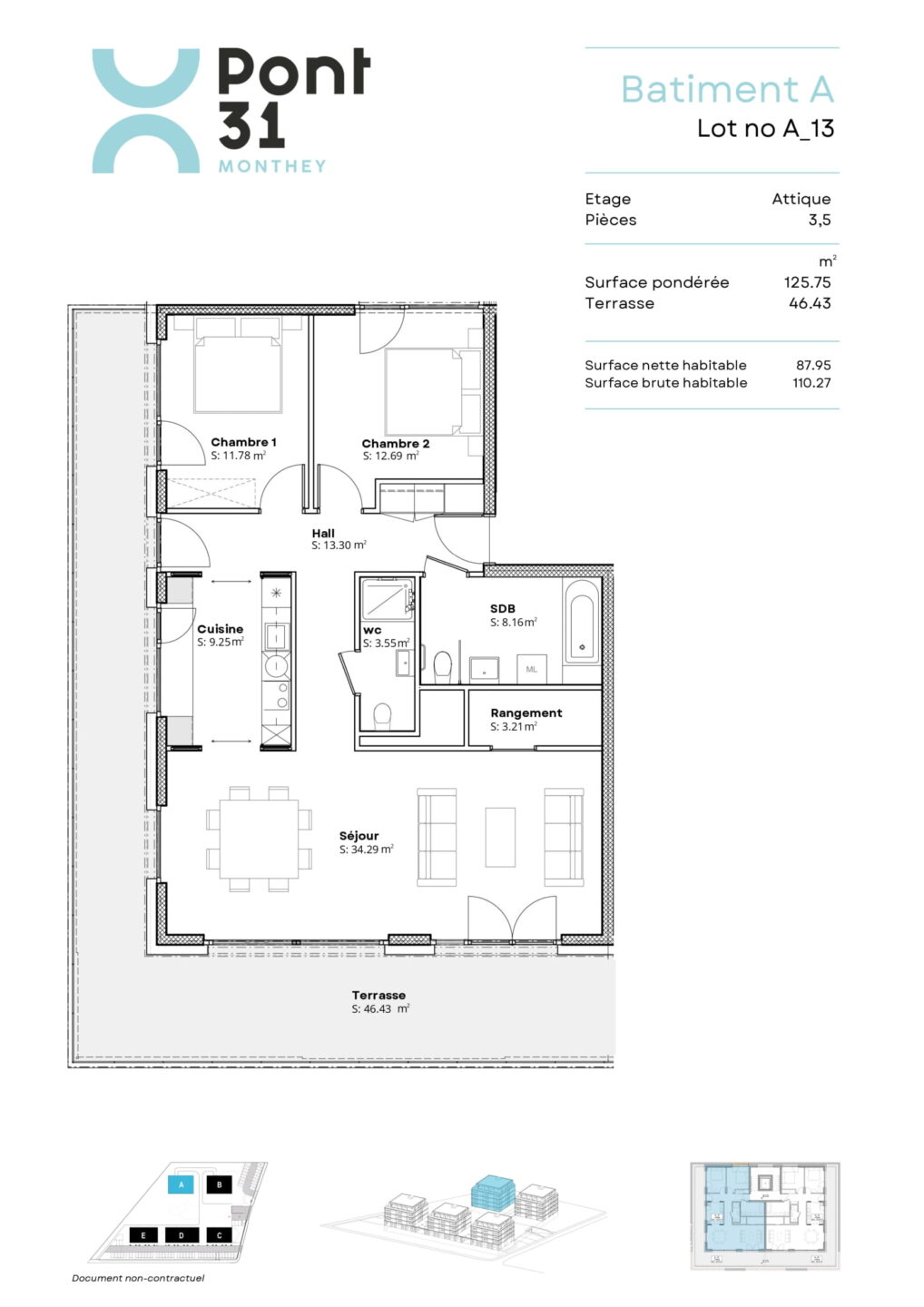 | A13 | Attique | 3.5 | 126 m2 | réservé | ||||||