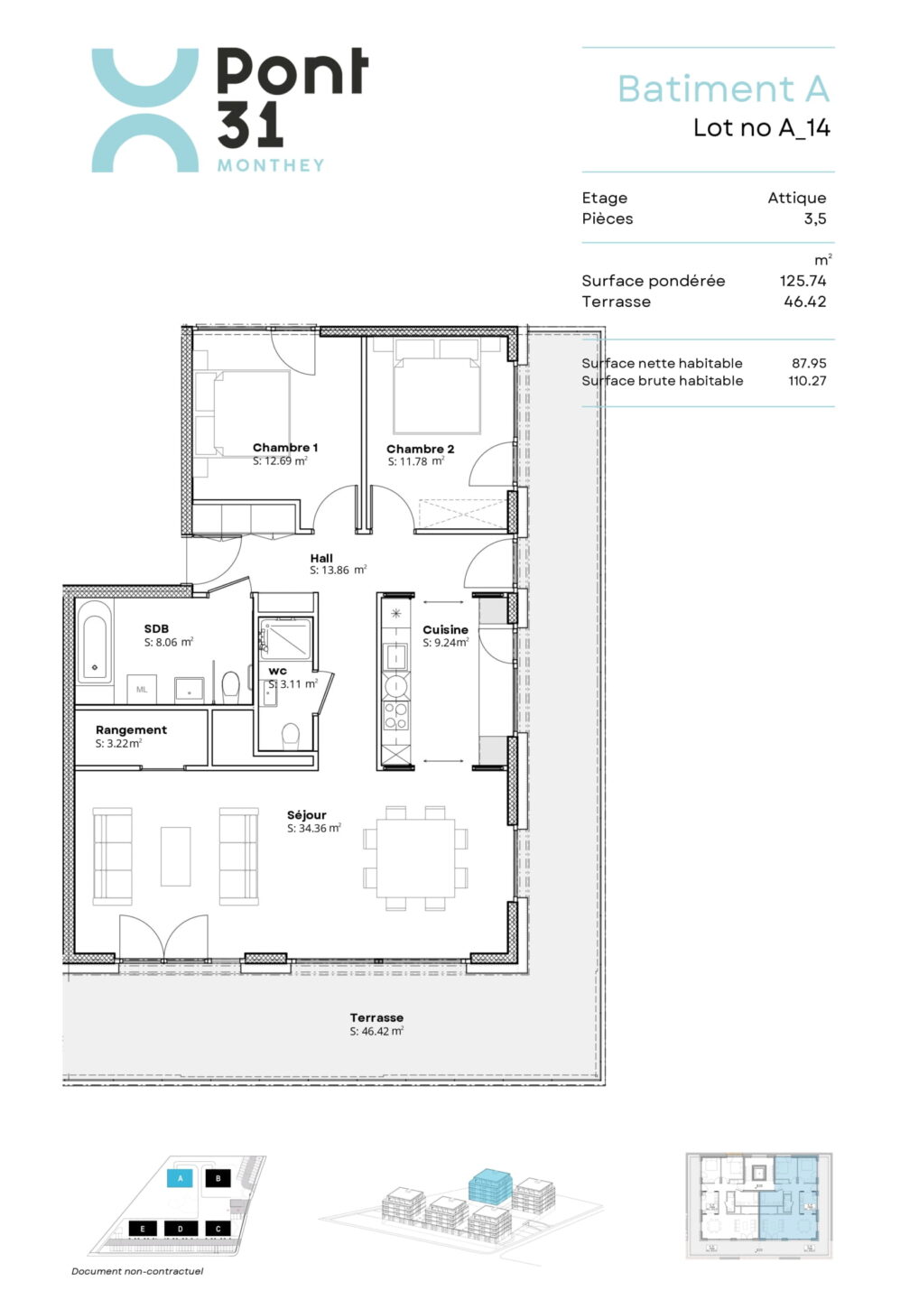 | A14 | Attique | 3.5 | 126 m2 | CHF 745'000 | disponible | |||||