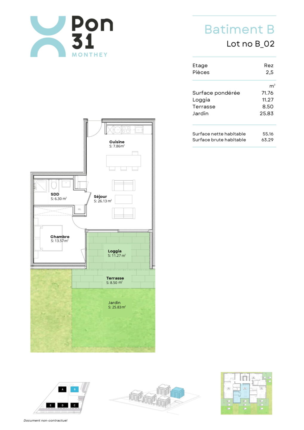 | B02 | Rez | 2.5 | 72 m2 | CHF 450'000 | disponible | |||||