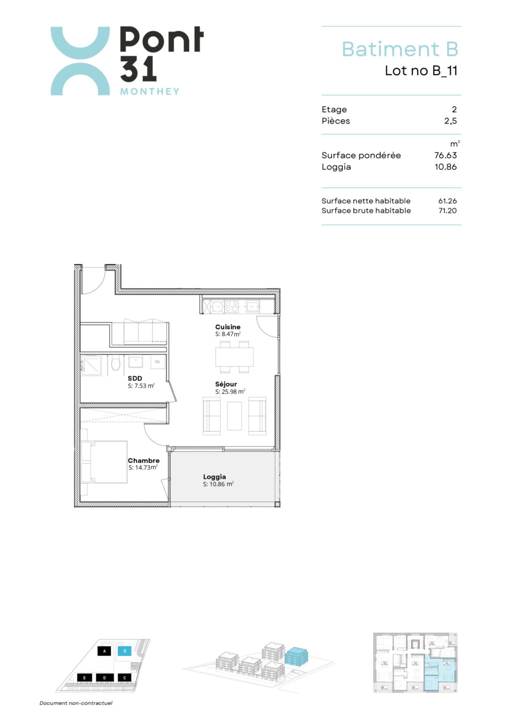| B11 | 2ème | 2.5 | 77 m2 | CHF 460'000 | disponible | |||||