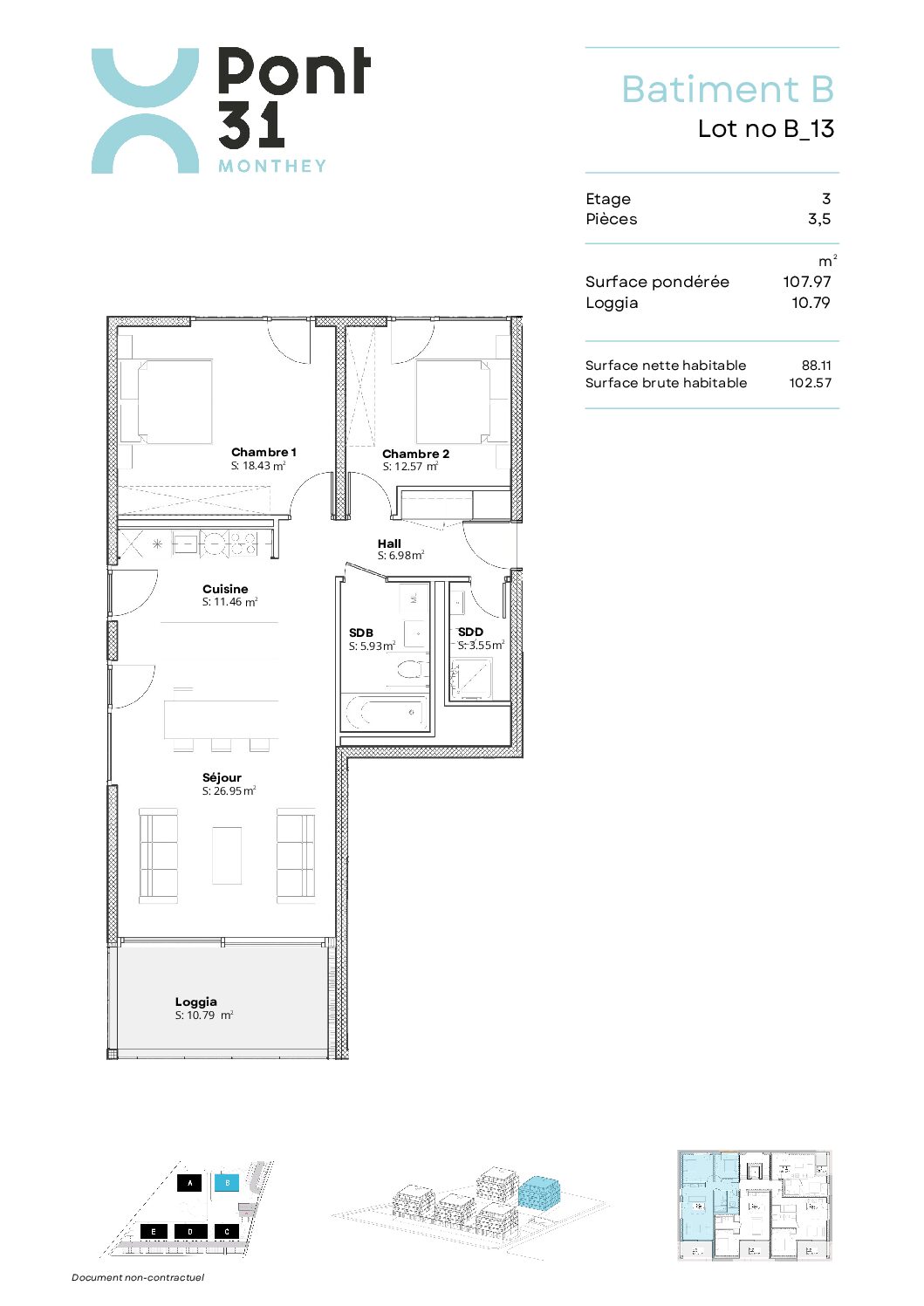 | B13 | 3ème | 3.5 | 108 m2 | réservé | ||||||