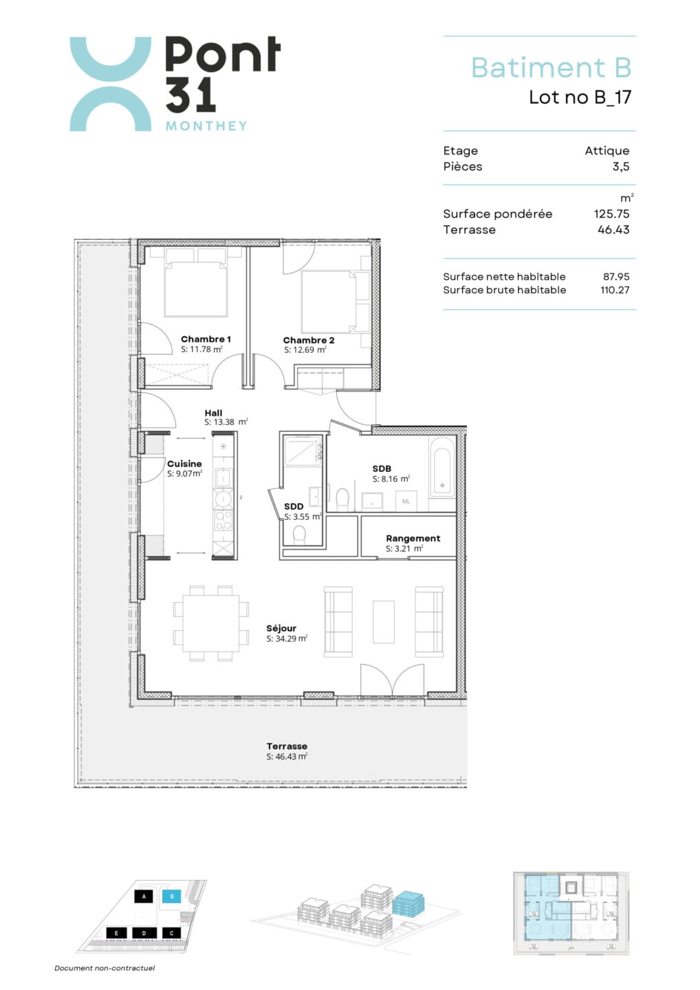 | B17 | Attique | 3.5 | 126 m2 | CHF 745'000 | disponible | |||||