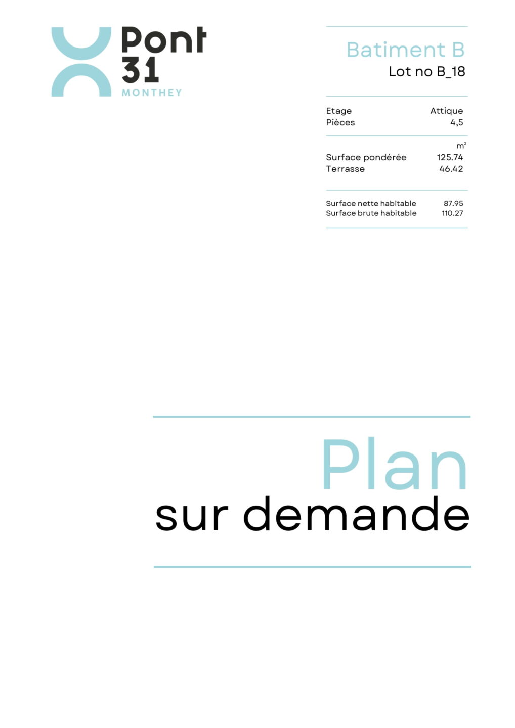 | B18 | Attique | 4.5 | 126 m2 | CHF 775'000 | disponible | |||||